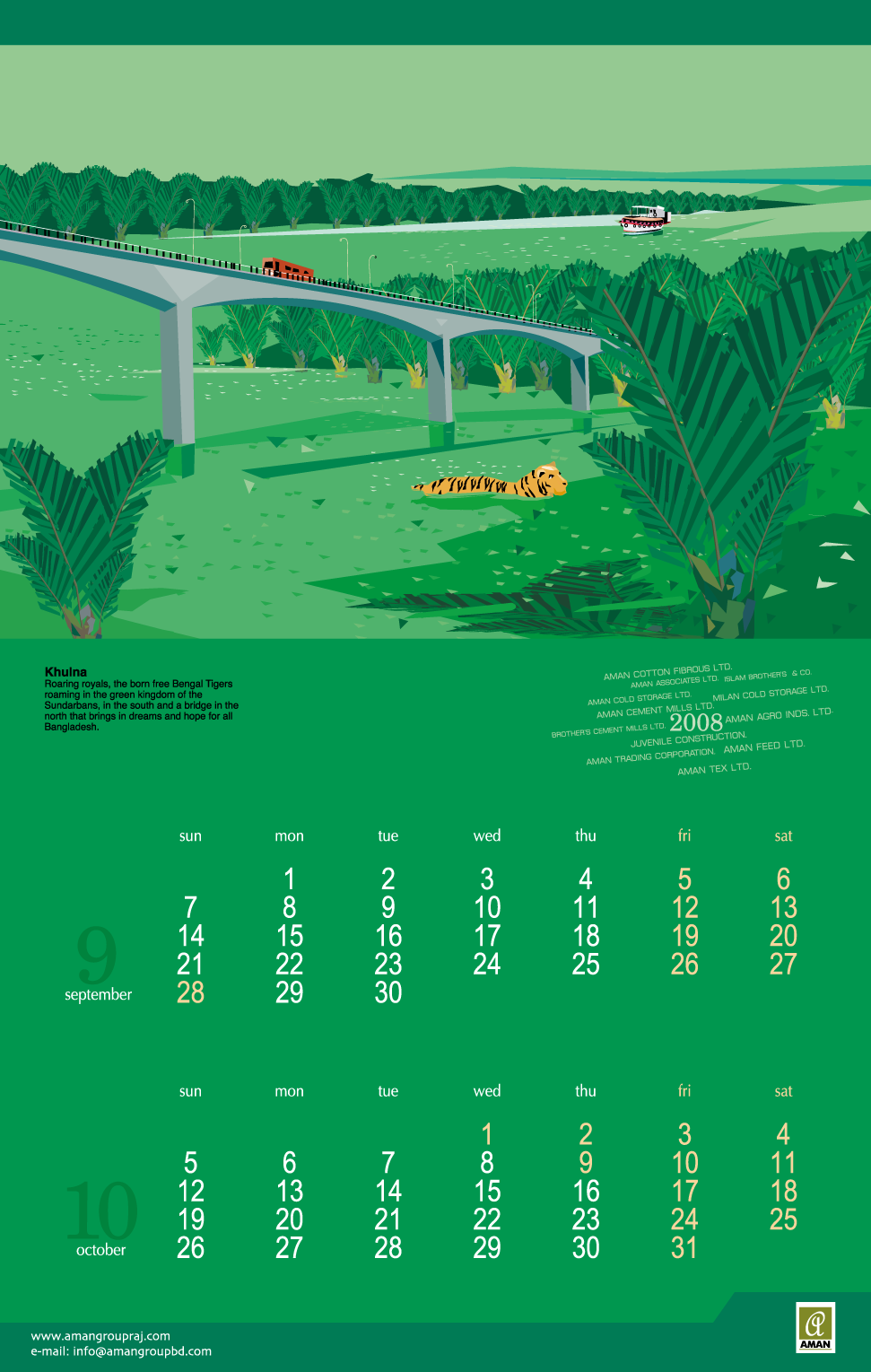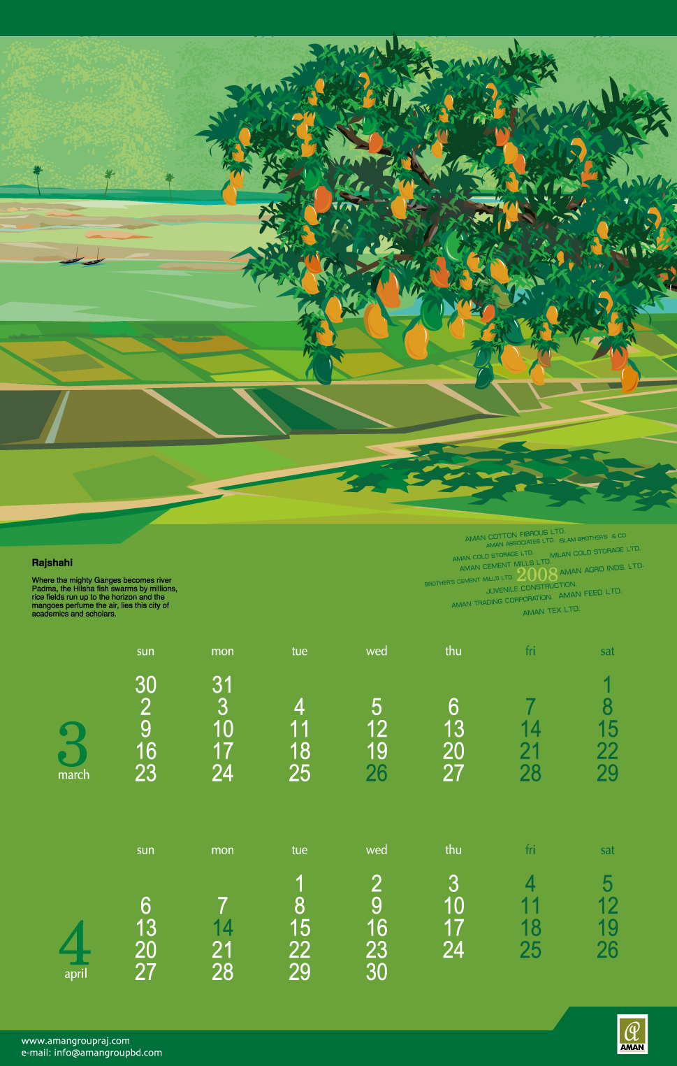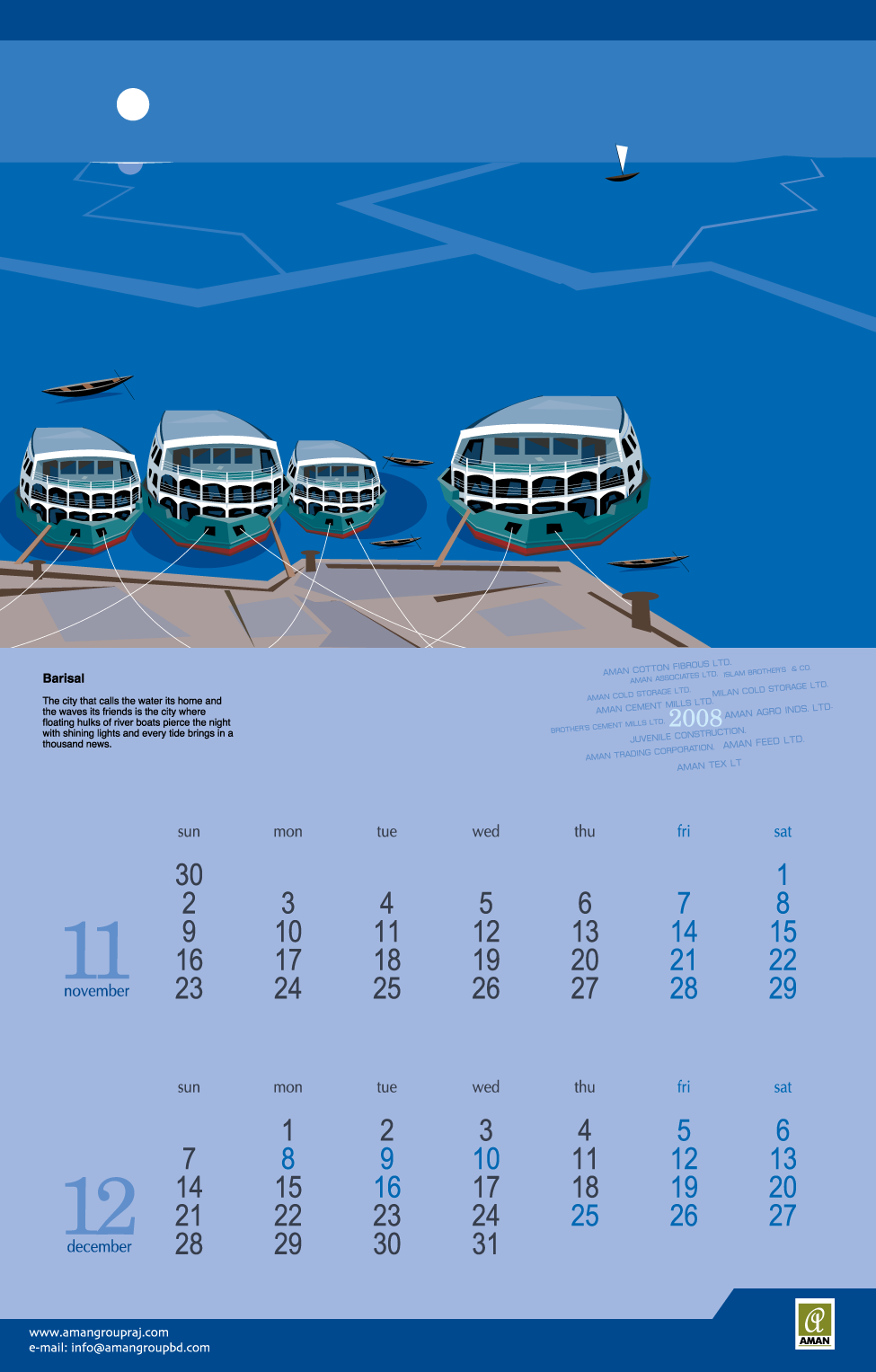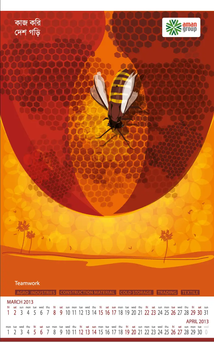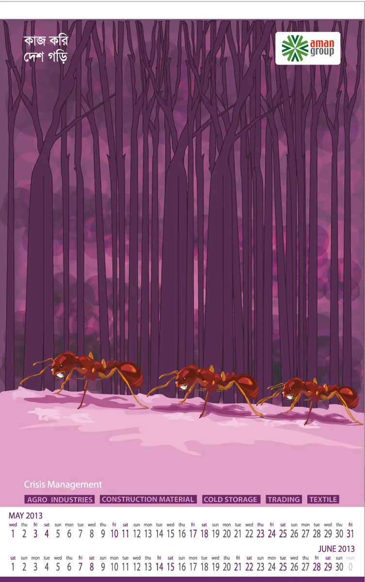 From 2005 to 2016, I created thematic digital artworks for the yearly desk and wall calendars of Aman Group Ltd., a leading corporate group in Bangladesh. All artworks were created using only a mouse, without any hand drawing or special tools. These works were published annually as official corporate gifts and distributed to government officials, media professionals, business partners, and the general public in Bangladesh and abroad. Over the years, the calendars became a recognizable part of Aman Group’s yearly visual identity, reflecting a long-standing relationship of trust and creative continuity.