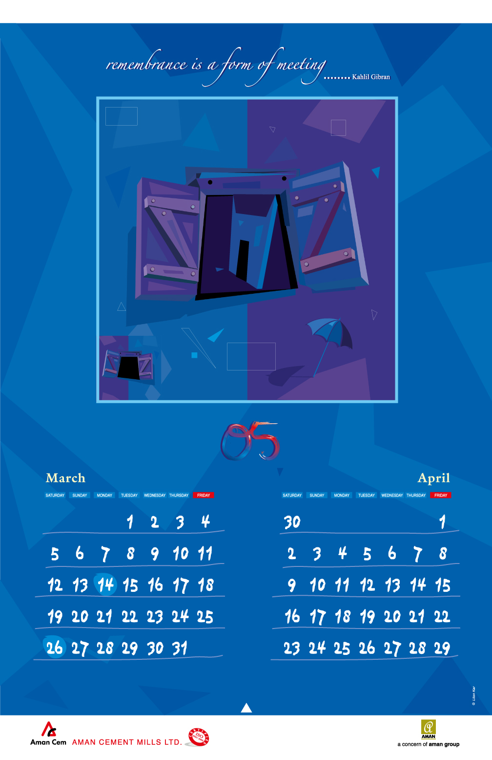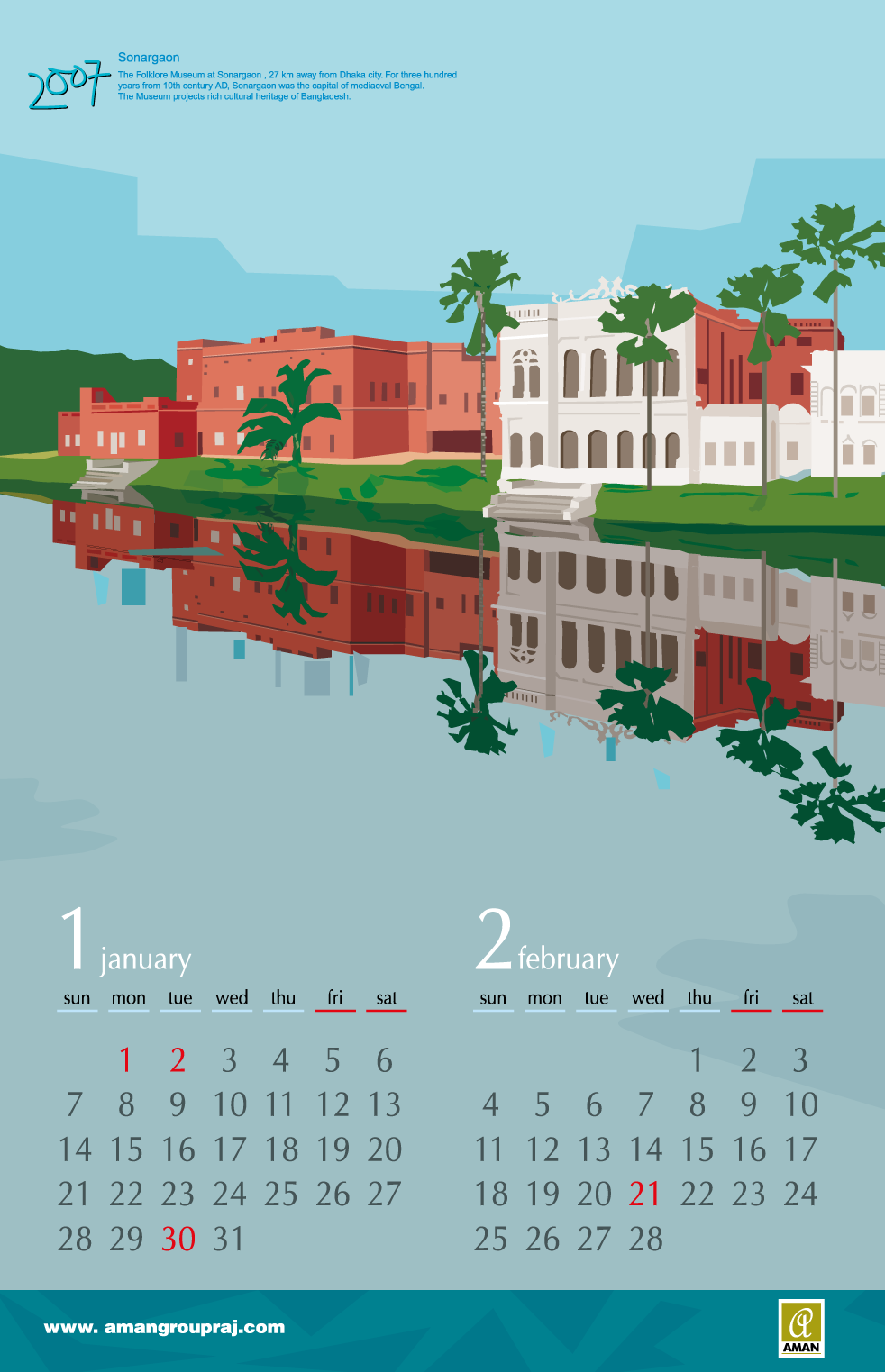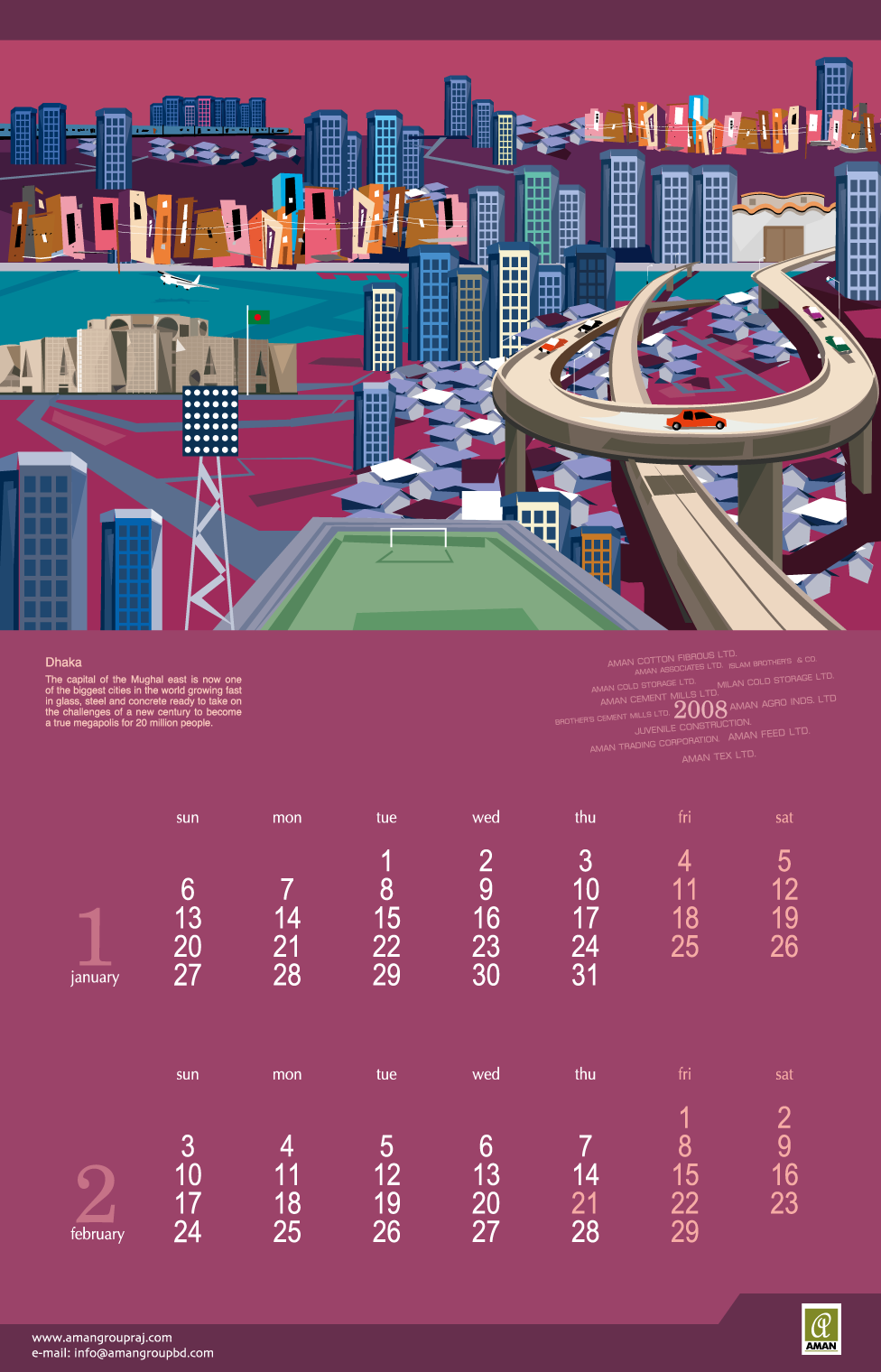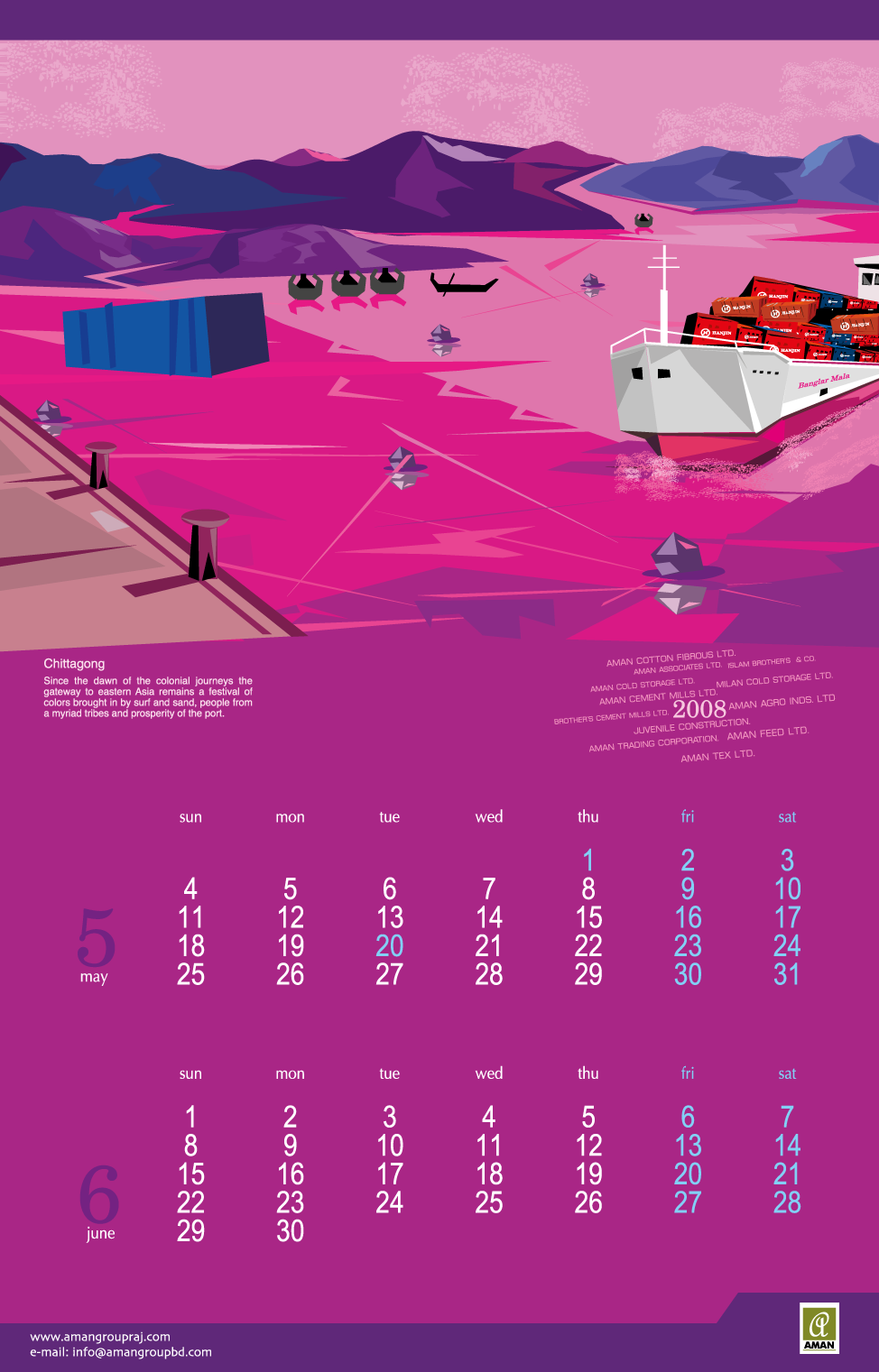 From 2005 to 2016, I created thematic digital artworks for the yearly desk and wall calendars of Aman Group Ltd., a leading corporate group in Bangladesh. All artworks were created using only a mouse, without any hand drawing or special tools. These works were published annually as official corporate gifts and distributed to government officials, media professionals, business partners, and the general public in Bangladesh and abroad. Over the years, the calendars became a recognizable part of Aman Group’s yearly visual identity, reflecting a long-standing relationship of trust and creative continuity.